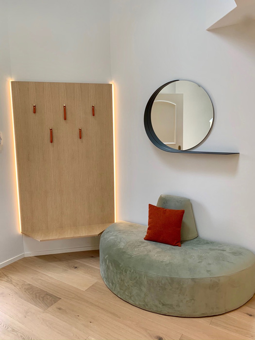 Ainsi les murs en crépi ont été lissés, les arceaux des ouvertures ont été supprimés afin de relier les espaces et permettre une circulation la plus aérée possible.